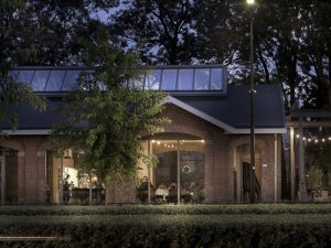De daglichtoplossing ‘VELUX Modulaire Lichtstraten’, die een zee van daglicht biedt onder het platte dak, is onder meer toegepast in het dak van de volledige gerenoveerde Houtloods in Tilburg. Door een groot aantal Modules naast elkaar te plaatsen wordt er verb