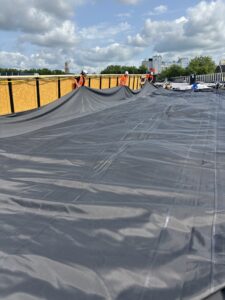 Hoewel de Vakrichtlijn Gesloten Dakbedekkingssystemen demontabele dakbedekking onder multifunctionele daken niet aanbeveelt, is hier bewust gekozen voor een deels mechanisch bevestigd systeem met detectie. Uit een test door Dura Vermeer en Kiwa BDA bleek dat zowel een volledig verkleefde als een losliggende EPDM-oplossing voordelen bood. Dankzij de expertise van de waterbassinspecialisten van SealEco koos ProRail uiteindelijk voor de demontabele variant: duurzaam, onderhoudsvriendelijk en betrouwbaar.